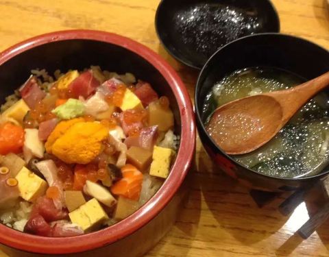 海鲜饭,味道鲜美,粒粒香,金枪鱼鳗鱼饭,鱼肉肥美,吃多也不会胖,口感不错,海胆刺身,口感很嫩,品种很多,服务态度好,环境不错