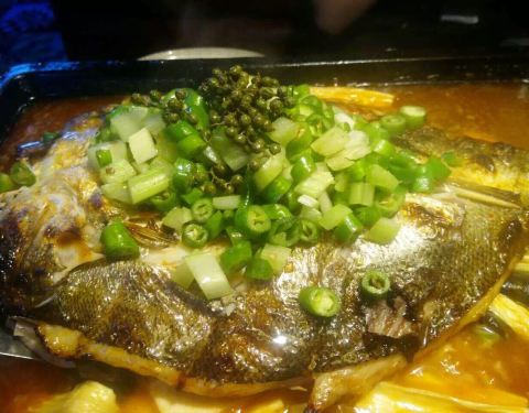 这是一家主打各种口味烤鱼的时尚餐厅,多种口味的烤鱼,经过300度高温,全方位烤制,牢牢锁住了鱼肉的水分,搭配独家秘制的酱料,麻辣辛香。吃起来既有烤鱼的香味,又有蒸鱼的鲜嫩。其中碧绿青椒芒果鱼的点单率最高,非常值得品尝。