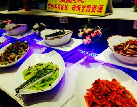 觉得真的还好啦,但是呢,培根有点点咸的,我和表妹去,一共才吃了四盘肉,看着隔壁桌每人瞬间涮了8盘羊肉,真心伤不起。凉菜有点鸡肋了。但是,有些还是很值得推荐的,涮锅的小料和锅底还不错,菜品也还好,烤羊排很不错,披萨也还好,热菜也可以,总而言之,整体来说值得推荐,在邯郸,这个还是不错的了。