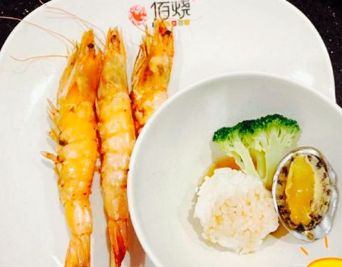 早闻其名,今天是第一次来,重点是离家太远了。佰烧在天鸿广场6层,乘坐观电梯,出去就见到了,很好找,在入口处有服务员指引到餐桌。她们的服务很不错,有巡场的服务生,会及时的把桌上无用的餐盘和垃圾收走,并及时的更换烤盘纸,根本就不用提醒。佰烧的菜品很丰富也很高大上,就说虾吧,有明虾,基尾虾,北极冰虾,生的熟的都有,满足你不同的口味。在多种菜品中我最喜欢带鱼子鱼肉刺身,吃到嘴里随着鱼籽的爆开鱼肉更加的入味了。还有烤明虾,我一人就吃了一大盘(有图为证)。烤肉中有一款蜜汁梅肉不错,口感软嫩,但吃不了甜口的就不要试了。糕点的式样很多,蛋挞尤其美味,外壳焦酥,蛋液嫩滑。最重要的还有鲍鱼饭和螃蟹,是限每人一份,但领回来发现螃蟹不太新鲜,鲍鱼的味道还行。总之这里的食物种类丰富,重要的是补货及时,装食物的盘子始终是满的,决对能满足大家的需要。