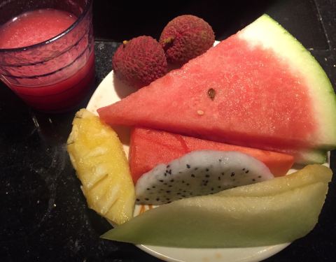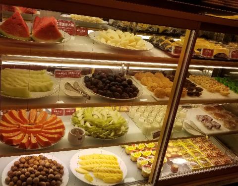 台湾的水果种类多又好吃,这里的自助水果都处理的很好,芒果上划了几刀,很容易剥皮,芒果很甜,只是有渣
