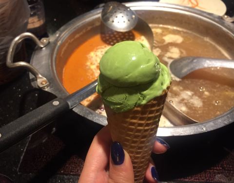 自助麻辣火锅,下飞机的第一餐,饿到爆,吃到超满足~几个规格自选肉类,其他都是自助咯,冰激凌无限量真的太诱惑~于是开始边吃火锅边吃冰激凌边喝台湾啤酒的搭配,简直完美!汤底的鸭血简直太赞,只是没有麻酱...