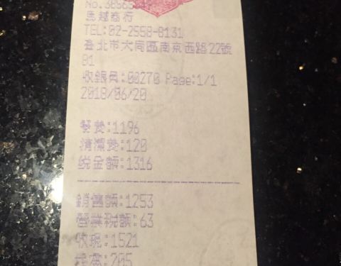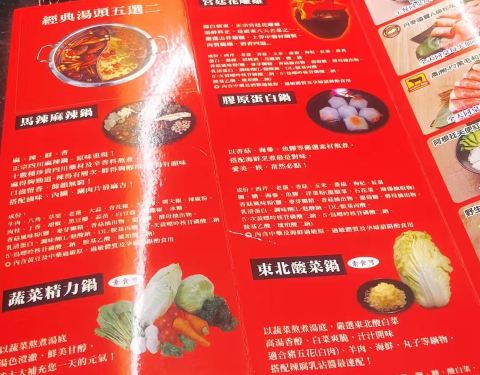 在台北的时候,看到点评上推荐的马辣自助火锅,性价比很高啊,因此人气也很高,点评上可以订座,但是要提前一两天订,预约费用是10元人民币每位。 为了节省20元人民币,跟小伙伴赶在马辣中午刚开业的时候就过来了。交通很方便,中山站1号口出来走两步就看到了马辣的招牌,走到地下一楼就是。 隔壁已经有一桌在吃了,是台北当地的一家三口。过了会儿,客人就越来越多了。 我们入座后,服务员耐心的给我们讲解了怎样点锅底点菜,锅底选两样,三页菜单,每页可以选8样,每样最多选3份,吃完了可以加单,浪费会罚款。 调料,酒水饮料,水果,点心,蛋糕,冰淇淋等,自己去自助区域拿,冰淇淋有哈根达斯和莫凡彼,酒水饮料很丰富,热饮冷饮,鲜榨果汁,啤酒等。 点了花雕鸡和胶原蛋白双拼锅,底料好足,汤很好喝,花雕鸡有黄酒味。 菜单上的8样肉每样来了一份,各式牛肉羊肉猪肉,后来发现这是重大的失误,肉吃多了,海鲜类就吃不下了,好亏啊。肉类都是冷冻肉切的,最好吃的是安格斯黑牛,国产猪肉最难吃。 海鲜类,最喜欢手掌虾和花枝虾滑。手掌虾好大,肉质也鲜嫩,花枝虾滑里的虾仁好大颗。 台湾的水果种类多又好吃,这里的自助水果都处理的很好,芒果上划了几刀,很容易剥皮,芒果很甜,只是有渣。木瓜,西瓜,火龙果,荔枝,凤梨,蜜瓜等都很好吃。 中午598台币每位,加10[%]清洁费,很划算的一餐,以后有机会来台北还会再来品尝的。 缺点是,地下一层的位置,通风不大好,出来身上一股火锅味。