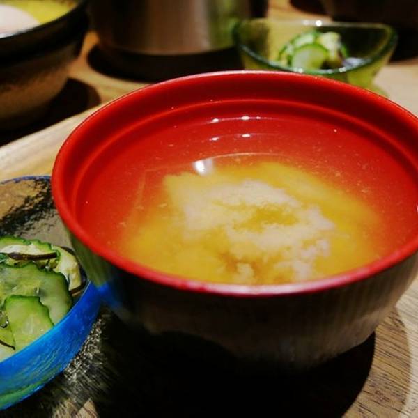 味增汤也比较值得一试,分量不大,一人份刚好,配料很多,豆腐海带,也是好喝的汤,适合餐前。银鳕鱼西京烧,品质很好,肉汁软嫩。味增汤小菜,黄瓜拌茄子,小菜,一点点咸味。鳗鱼手握寿司,红姜片也比较好吃。寿喜烧,肥牛很多,金针菇娃娃菜也很不错。蘸料鸡蛋
