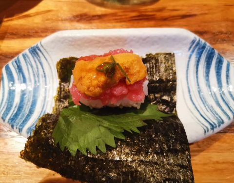 鳗鱼寿司,每次必点,一份两个,鳗鱼的甜味的,类似蒲烧鳗鱼的味道,鱼皮稍微有点腥味,但是鱼肉非常好,肉质肥厚,酱汁很浓,手握寿司品质很不错。