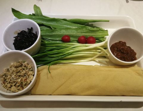 “金春禧”,周日中午我们一家三口又来到(先天下广场店)打卡。 周五晚餐刚在他家吃过,讲真,能让我们三天内吃两顿的餐厅,“金春禧”是第一家。 [煎饼卷大葱]这次有(周五晚上卖空,木有吃上)。听服务员讲,他家的煎饼都是在山东制作,当天送到,保证是地道的山东煎饼。大葱这个时节是木有的,配菜小葱、油麦菜,辅料有大酱、鸡蛋碎、咸菜丝。煎饼虽说是常温的,口感非常筋道,经嚼,包裹好配菜、辅料之后,口味咸香丰富,越嚼越香。真是名不虚传,五星推荐。 [酸汤龙利鱼]汤汁酸辣鲜美,鱼肉口感爽滑,无腥味和异味,营养丰富,开胃佐饭之佳品。五星推荐。 “金春禧”的菜品道道可口怡人,价格公道,难怪食客盈门,我们每次都需要排队呢。 下个周末我们再去(怀特店)打卡。
