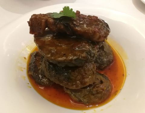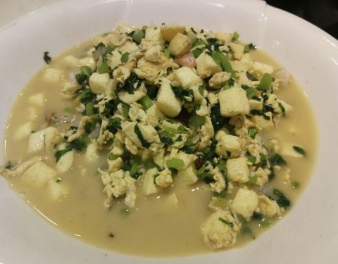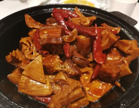 几个人在这儿吃的一顿饭,忘了味道了,就觉得还行吧,吃的还是挺喜欢的。糯米排骨不错,我记得,比在峨眉小镇吃的要好。多宝鱼一般般,那个炒螃蟹的还是什么,就那样吧。墨鱼饺子,同伴们说不错,我感觉没什么特别的。酸辣蕨根粉不错,不错值得推荐,那个图片里的豆腐好像也还好,嗯,记不太清了。整体还不错,人气挺高的。