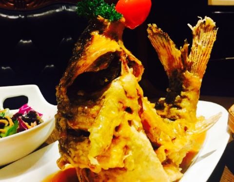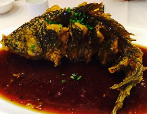 中午去的人超级多,一直不知道这家怎么这么火,所以去品尝吧。一家子都不喜欢海鲜,不喜欢餐厅里的海鲜味儿,点菜也比较局限了,因为海鲜菜非常多。「糖醋鲤鱼」炸过然后浇糖醋汁的,味道很浓郁不油腻,开心。就...中午去的人超级多,一直不知道这家怎么这么火,所以去品尝吧。一家子都不喜欢海鲜,不喜欢餐厅里的海鲜味儿,点菜也比较局限了,因为海鲜菜非常多。「糖醋鲤鱼」炸过然后浇糖醋汁的,味道很浓郁不油腻,开心。就喜欢这一个,味道好而且不会腻。其它几个菜都不高兴,就不打字了。还有,上菜好慢,都要结账了,才上水煮肉片,我要的饺子最后也没有上,就退了。排位,等菜,结账,不是很喜欢的经历。