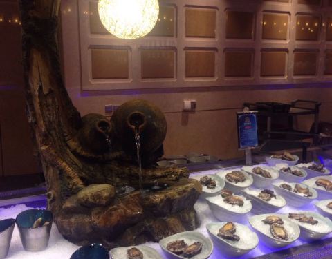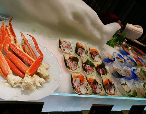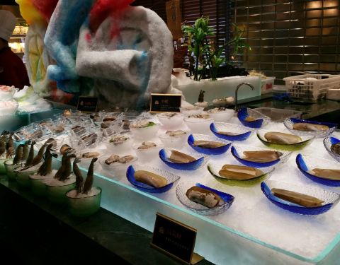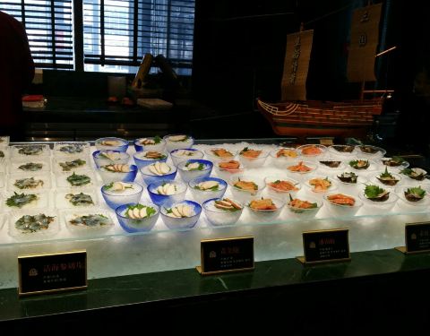 真的令人耳目一新的海鲜主题自助餐,装修有档次,陈列冰雕有新意,每人一个小锅可以让不吃生的自己涮。海鲜品种多得尝不完,竟然还有人参可以自制海鲜人参汤,另外还可涮牛羊肉、煎各式肉扒。少有自助餐是有如此多的饮品,红酒、葡萄酒、鸡尾酒、罐装啤酒和汽水、鲜榨果汁、椰青任喝,雪糕是哈根达斯的。这里是非常有诚意的高端自助餐!