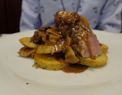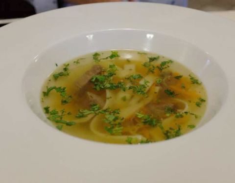 本想去洞穴餐厅的,可没预定到只好随便找一家吃午饭了,看到这家环境不错就想试试看,有点法餐和当地菜系的融合,色拉很清爽但量不大,牛肉汤牛肉味还是很重加这面条有点像面的感觉,点了两份主食,一份牛肉一份...本想去洞穴餐厅的,可没预定到只好随便找一家吃午饭了,看到这家环境不错就想试试看,有点法餐和当地菜系的融合,色拉很清爽但量不大,牛肉汤牛肉味还是很重加这面条有点像面的感觉,点了两份主食,一份牛肉一份鱼,牛肉的酱汁很棒,有嚼劲但不老特别蘸着酱料很好吃,鱼比较清淡,下面垫着奶油意面搭配着吃得很饱,价格也不贵,还给了15[%]左右的小费。