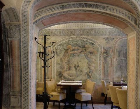 餐厅的菜主要基于新鲜淡水鱼和深海水鱼。主厨致力于将捷克经典与现代烹饪相结合,做出独特的美味来。餐厅完全选用新鲜天然的食材,所以都是在当地农场和种植园采购食材的。主厨Jiří Houška十三岁就开始美食事业,经验丰富,善于创新。餐厅的葡萄酒也是一绝,有一个专门的葡萄酒酒窖供客人挑选。 餐厅建筑本身也是克鲁姆洛夫历史的一部分,14世纪就兴建了。室内精美的壁画由画家Josef Palouda 绘制,所以餐厅环境是不错的。