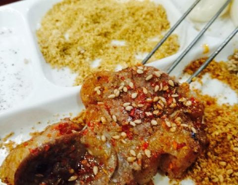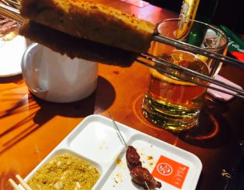 很有特点的一家串店,位置非常隐蔽,不好找,下着大雨去拔草。环境像烤肉店,也可以说这就是一家烤肉店,有牛排,冻得,先用下图的枪解冻把表面用火喷熟,在撒上黑胡椒用碳火再烤,味道还行,碳烤香菇值得推荐。总体味道比较咸,串的味道中规中矩,鸡翅不推荐,太甜,麻将黄瓜不推荐,咸,腻,不太适合和烧烤一起吃,烧烤还得是素拍黄瓜。服务没得说,五星,不用自己动手都给做了,服务员眼里有活。总体价格有些小贵,俩人170。
