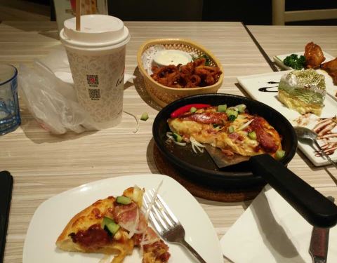 菜品可口,环境丶氛围大好,选择性大,午餐经常光顾必胜客,干净卫生整洁。