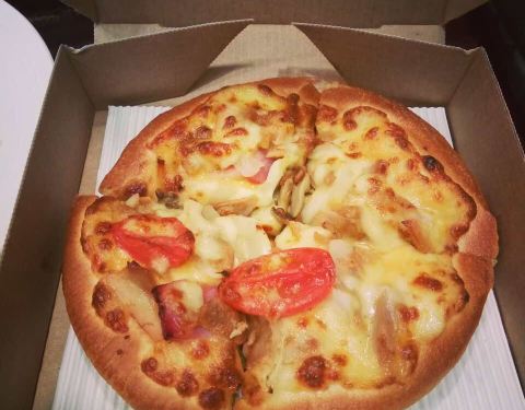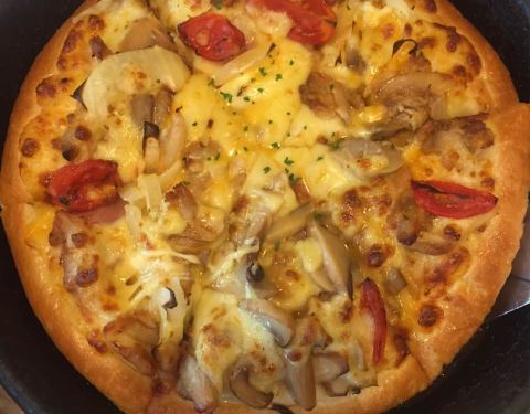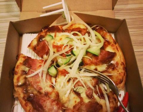 某一天,不晓得怎么想的,点了一份必胜客,就如每次吃到以后一样的后悔,价格贵,不好吃。 意面,忘记叫什么了,加的鸡肉,面条非常干,松子很香面很油 鸡翅组合,和肯德基一个味道,是这盘点的最好吃的了。 披萨,芝士包边的,菜和肉可以完全忽略,因为味道真的是不咋个。就边缘的芝士和面皮好吃哦 三样,150多,后悔中。。。。。