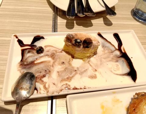 - 原本香甜的蛋糕如果蘸到更多白汁尝起来会更酸和更咸一点,如果舀到较多珍珠那么像是黑糖奶茶的味道就更明显