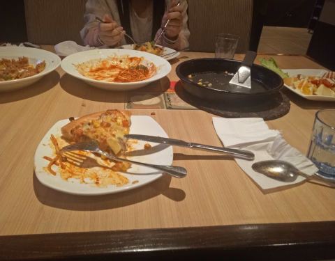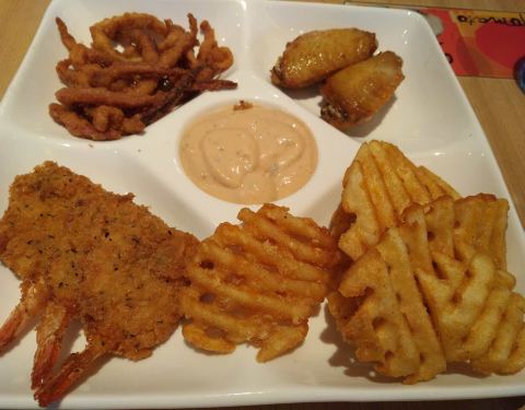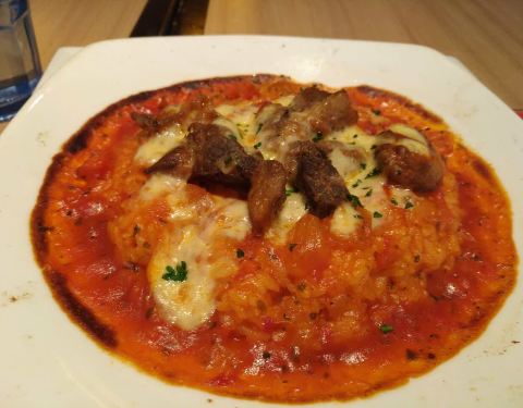 必胜客哪里都差不多,没特色,但西餐大杂烩,没选择时这里的没特色就是特色了。这家也是,人可多了,我们排了30分钟的队才坐下来。我们先点了主食:披萨饼和牛扒,接下来,点了小吃:凤尾虾,最后点了甜点和饮料,算是完成了必胜客任务。