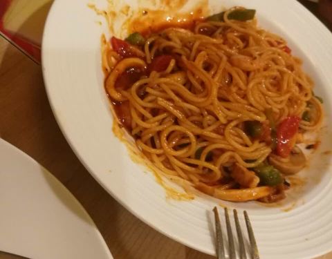 我们先点了主食:披萨饼和牛扒,接下来,点了小吃:凤尾虾,最后点了甜点和饮料,算是完成了必胜客任务