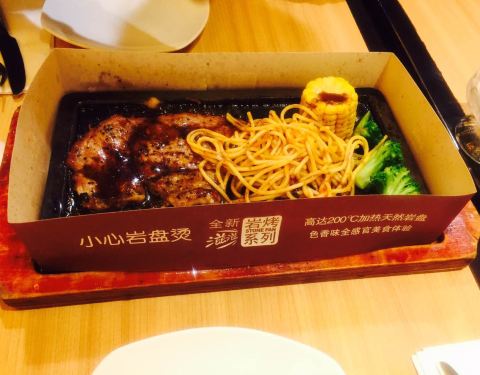 必胜客哪里都差不多,没特色,但西餐大杂烩,没选择时这里的没特色就是特色了。这家也是,人可多了,我们排了30分钟的队才坐下来。我们先点了主食:披萨饼和牛扒,接下来,点了小吃:凤尾虾,最后点了甜点和饮料...