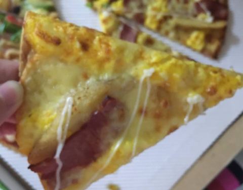 超级好吃,特别爱的一款披萨,脆脆的,蛋嫩嫩的,有活动时一天一个,哈哈