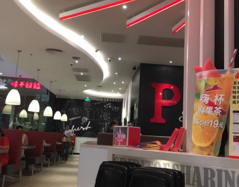 鲜果茶里面很多水果,甜而不腻,物超所值。披萨也很好吃,早就想吃这一款披萨了。环境好,地段好,服务态度一般,感觉服务员有点不耐烦,减分。用支付宝的优惠买单很划算呢。