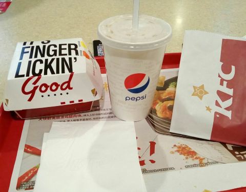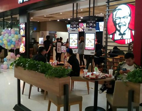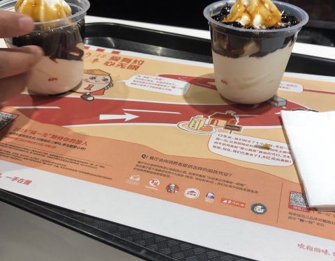 万象汇里面的肯德基是在五楼,还比较好找,甜品店是在负二层,我在负二层的时候反而没找到。店内可以自助点餐,还可以用自助机点餐,我还真没注意能不能人工点餐。用餐区在公共区域,环境还挺漂亮的。 本来是想买念头乌龙茶的,后来就去买元妹花淇淋了,还买了个小蛋挞。