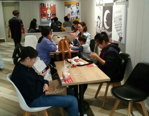 店内可以自助点餐,还可以用自助机点餐,我还真没注意能不能人工点餐。用餐区在公共区域,环境还挺漂亮的