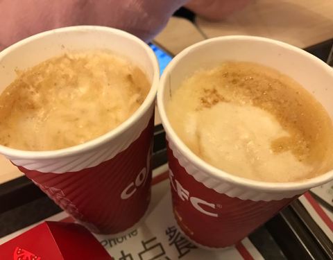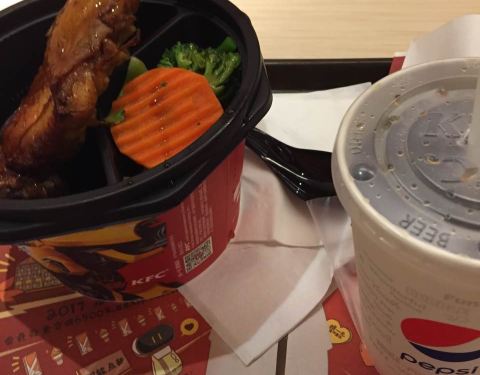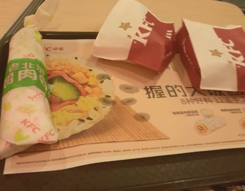 肯德基的炸鸡好好吃,吃得好过瘾,有抵有好吃,拿铁咖啡好喝,棒棒的