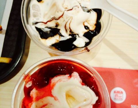 吃了晚餐,没有事情做,行路去天润散下步,一路行着,到了肯德基,小孩子要进去玩小滑梯,就进来了。玩了自然少不了吃的了。点了炸鸡翅还有奥尔良鸡腿。还有两杯新地,原来是要雪糕的,不想家人点了这个,我倒还是第一次吃这个,没想到如此美味,是我喜欢的味道,我这杯是巧克力味的,儿子的是草莓味的。确实好滑美味。价格自然也不菲,九元一杯呢。呵呵。