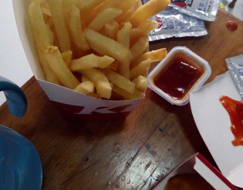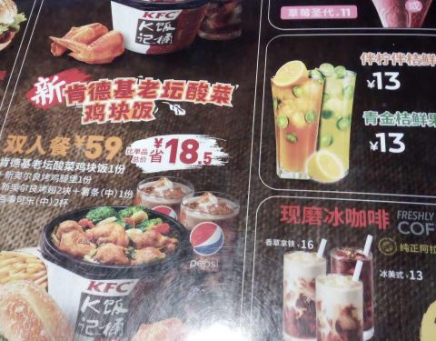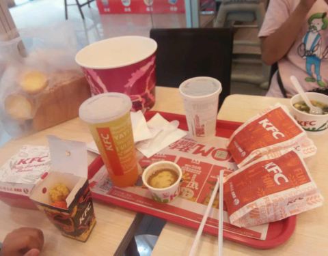 排队等了很久,服务员说扫码自助订餐也可以享受优惠价,但是没有具体指导,不止我一个人不会用,上校鸡块炸太老