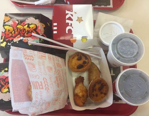 肯德基餐厅里面有各种口味的甜品,北海道原味冰激凌据说是最好吃的,入口后奶油味道纯正口感微甜,真的很好吃,价格小贵炸鸡和汉堡的口味也很好