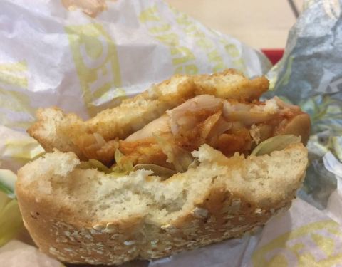 烤翅汉堡!超好吃!本人特别喜欢吃奥尔良烤翅,干净卫生,方便!菜也很新鲜!面包是谷物麦片的面包,下次还会吃这个!超赞!