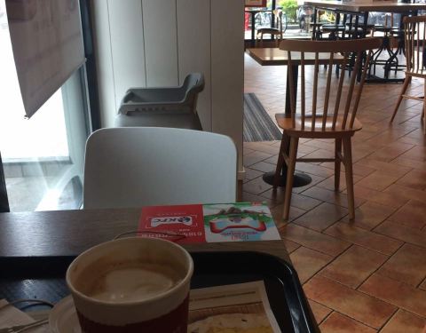 住在楼上酒店。。就近来买个咖啡。。9点才开门。。不提供早餐。。服务有点慢