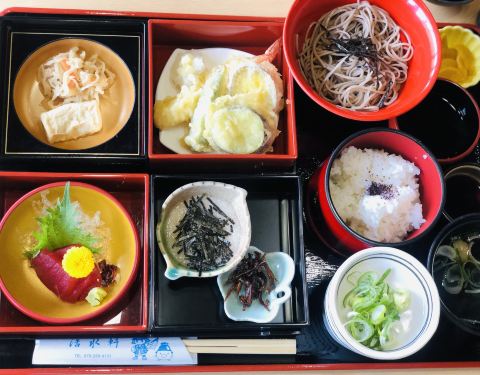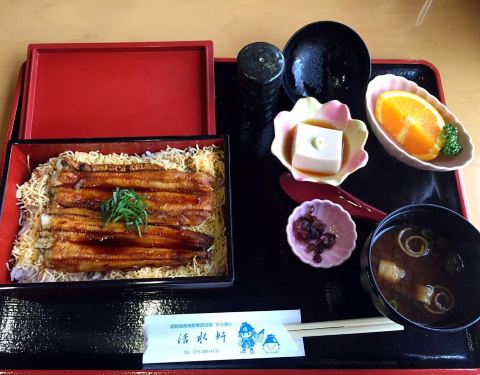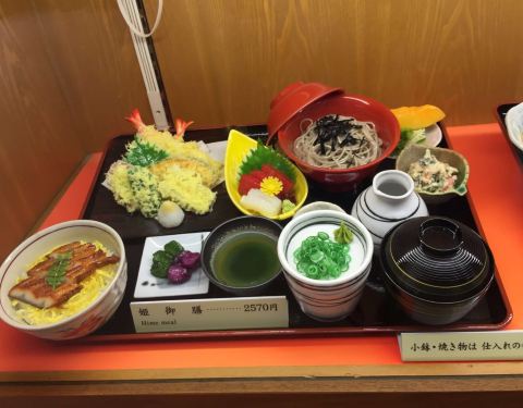 边吃饭边纵览姬路城旁好古园的最好风景 实在是太值得五星级推荐的一家餐厅了 料理未必会比其他地方卖的贵 但是这view真是绝了 来这座园林不逛其他 只吃这家餐厅都算值得了 山水潺潺流淌 绿意盎然尽收眼底 在现场感觉呼吸都变的绿色了 「鳗鱼饭荞麦面套餐」 这份套餐面条面条份量超大 鳗鱼饭也是还算口感不错 「活水轩天妇罗套餐」 有刺身 有小份荞麦面 有味增汤 各种都有的 很适合每种都能尝一下 而且天妇罗真的超级好吃 宝宝吃完还要下一个 难怪姬路餐厅排名第一 来姬路城一定记得要来这吃顿饭