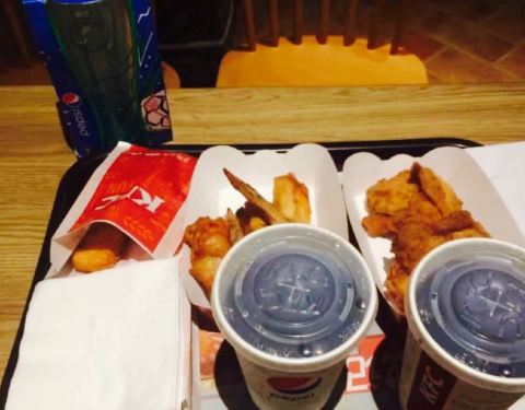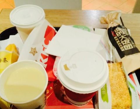 吃了这么多年的KFC,然而还没有吃过它的早饭,记得小伙伴之前说它家粥还不错。趁着这么大清早送完好盆友,回去顺便就带了点✌️。『蛋挞』。会员卡里居然有买一送一的券,开森。正好最近想吃呐。吃来吃去还是觉得肯德基的蛋挞最香甜最滑嫩最美味。『香菇鸡肉粥』。还蛮喜欢咸粥的,这个里面的肉的确也算不少呢,而且很嫩很有味儿,另还配有一些蔬菜,完美嘻嘻嘻。『豆浆』。嗯,热热的,淡淡的香甜味,还不错哒。『油条』。或许是因为不加明矾的缘故吧,没有早餐铺卖的那么酥脆,比较硬硬的。