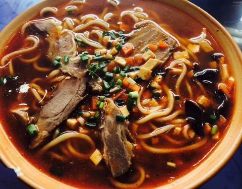 - 朋友推荐要尝尝这个驴肉黄面。果然名不虚传,肉香面劲道,真不错。第一次来敦煌,很喜欢这个神秘的地方