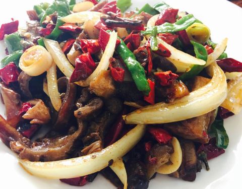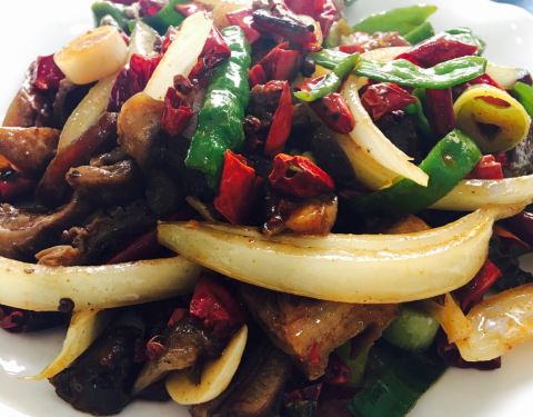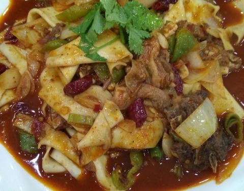 虽然敦煌城里随处可见党记驴肉黄面,但是我坚信我吃到的是最好吃的因为人少却贪嘴都想品尝,老板甚至还破例给我们炒了一份腰花,驴皮,驴板肠三合一。驴肉黄面和驴肉臊子面的口感都很赞,敦煌大叶菜也很爽口,一顿饭喋的心满意足口齿留香回味无穷……