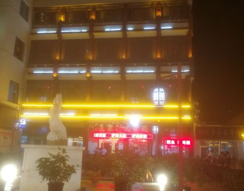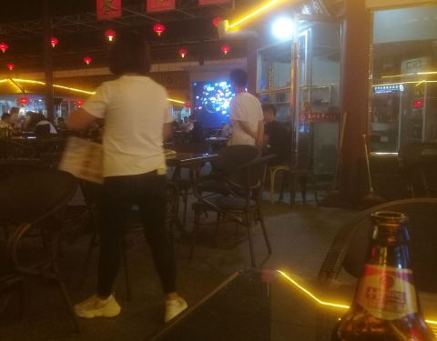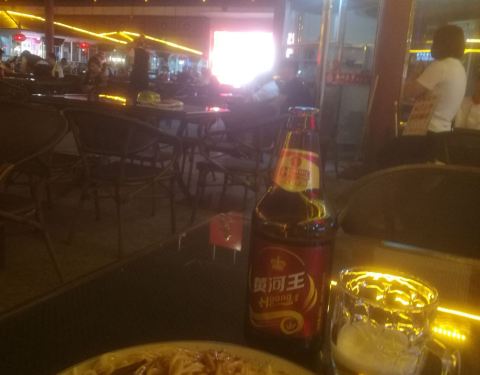 真没注意在哪吃的,看店门应该是在这。晚上广场都是桌子。素面16加驴肉28啤酒王牌黄河12冰的。还不错,美食城吗,肯定贵点。惊奇的是他们这竟然可以拼菜