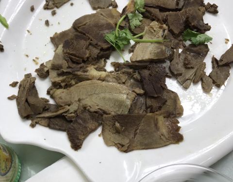 驴肉不是新鲜的,我们六人要了一盘都没有吃完,不是量大,而是口感不好