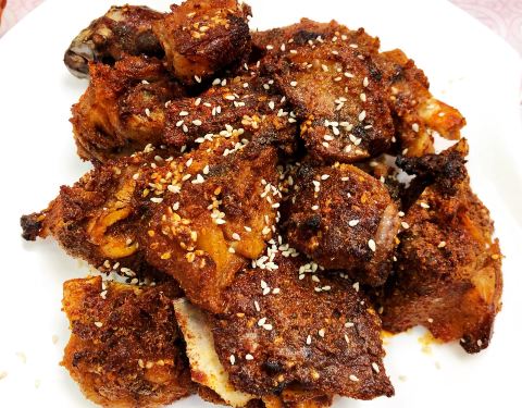- 一人吃了3块羊肉是在吃不下打包带走4块剩下的羊腿肉,沙葱炒鸡蛋很嫩,个人感觉沙葱炒鸡蛋比凉拌沙葱好吃