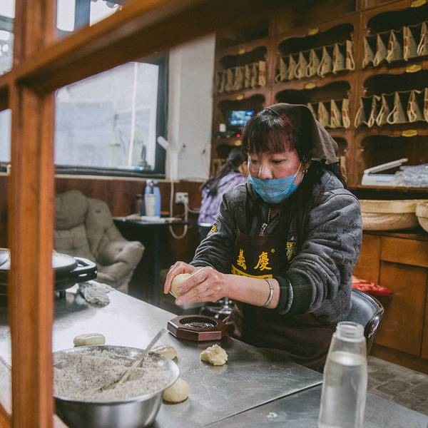 老店在小街上,跟着地图一路找过去,很简单的大堂,只卖红糖五仁月饼,有包装好的一袋五十元二十个,有也散的,买了两袋带走,可爱的小掌柜还送了两个,新做出的口感酥香。
