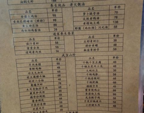 位于武当山的南岩风景区,一日三餐都营业,同时还包含住宿业务。菜色是武当山当地的特色菜,不算廉价,但是味道正宗。