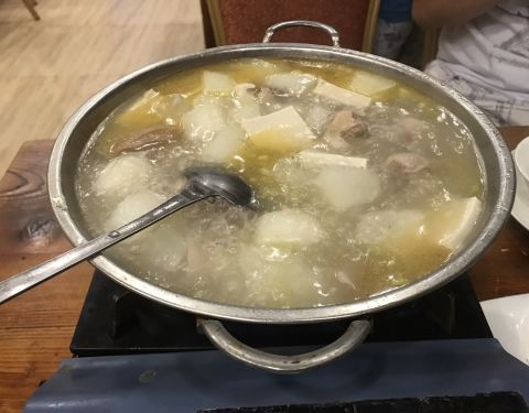 带爹妈到太极会馆吃鸭汤火锅,其实冲着牛骨郭去的,他们不供应了我们只能换鸭汤锅