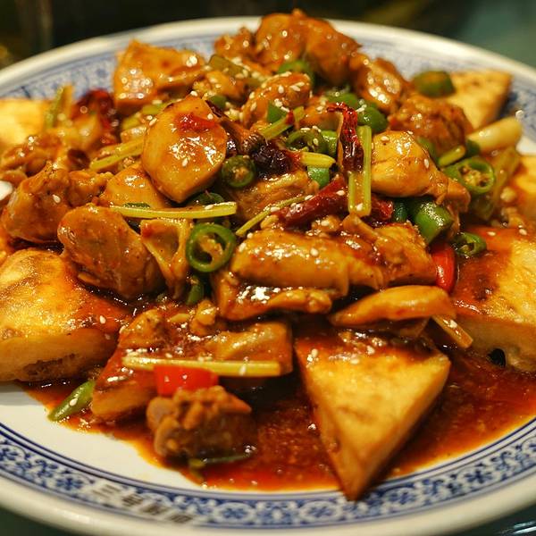 这家店在去蓝田自驾游时,搜索的当地评价最好的一家店,晚餐便直接定在了这边。我们是从白鹿原开过来的,一路跟着导航也不远,路边停车5元不限时,交通还是比较方便的。因为怕等位,所以提前致电了商家,帮忙预留一个大桌。店内环境比较简单,如果不是看推荐,根本猜不到这会是蓝田评价最好的餐厅。可能过来的时候是饭点,感觉店内会有些吵杂,还有小朋友不断的跑来跑去。他们家上菜速度还是挺快的,虽然顾客爆满,还能保证每一桌的上菜速度,这一点是需要满分好评的,他们家的菜味道确实很地道,点了一桌菜,没有一道碰雷,也实属难得。#锅盔土鸡# 这是他们家的TOP1,38元一份,价格可以说是很划算了。鸡肉被烹制的很是入味,轻轻一咬。便骨肉分离,肉质本身也深深的浸入了调料,香辣可口,想要pick它的C位。#蓝田饸饹# 蓝田的特色小吃,类似于西安凉皮般的地位。口感也跟凉皮很像,都是非常清爽的口感。 #关中酿皮# 依旧是跟凉皮的口感很像,陕西毕竟是面食的招牌地,各种面食做法只会让人称赞不觉。#五香葱花大饼# 点餐的时候差不多是按照排行榜走的,果然跟着大众的选择点菜,完全不会出错,这个饼趁热吃超好吃,后来打包了一份回去,就没有店里吃到的美味了。#油饼卷菜##烤鱼# 吃饭的时候也比较晚了,颇有些夜宵的感觉,所以便叫了烤鱼,充当再吃烧烤的感觉,不过鱼并不是很大。#菜豆腐# 虽然不知道这道属不属于陕西特色,不过每次下馆子的时候,我们都还是挺喜欢点这道当素菜吃的。#老哇撒##干锅八珍菌#
