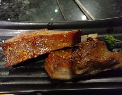 - 他家的黑椒小牛扒 大块肉,羊肋条都很好吃。烤好的羊肉串,小花卷味道也不错