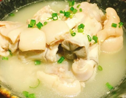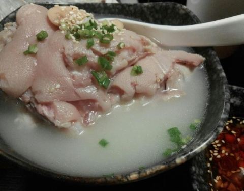 - 清洗的非常干净,汤奶白,猪蹄白嫩,吃起来没有异味,非常棒,饮料选择了桂花酸梅汤与唯怡豆奶,都是...