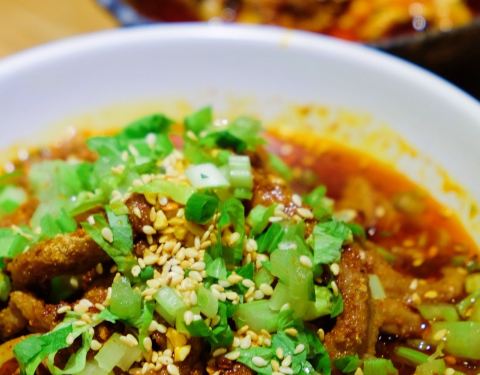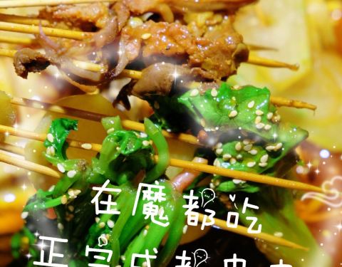 ...,这里主打成都风味美食,最受欢迎的是串串火锅,红汤锅底鲜香味美,还有红糖糍粑、担担面等川式点心