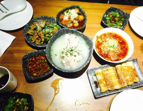 2017年最后一条点评 趁着节假日带着爸妈尝一尝成都小吃 搭乘地铁二号线到东昌路 二号口出来步行两分钟就到店了 店铺不大 人气火爆 点了之前去成都吃过的几样小吃 整体口味比较重 偏麻偏辣 老妈蹄花:蹄花炖的熟烂 甜水面:面条不够劲道 有点可惜 串串点了老成都经典锅底 琅琊土豆:酸辣口味