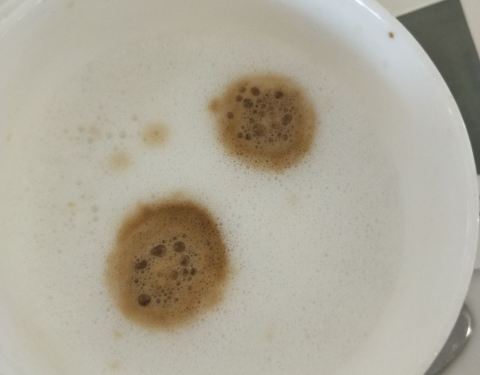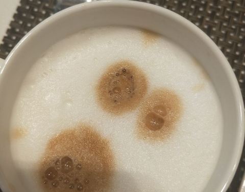 刚进去看到摆着有咖啡机,还没反应过来,刚想自己接咖啡呢,服务员就过来问我要不要喝咖啡?我说要,然后他问我要不要加牛奶,我说要,然后他就开始帮我做了。因为看着制成咖啡还要等一会儿,我就嘱咐服务员帮我放到桌子上,他欣然应允了。好贴心的服务啊。