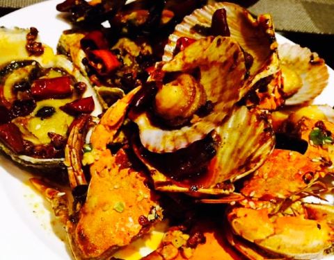 说实在的进到酒店里面感觉好浮夸,太高大上了。还是来说菜品吧。蒜蓉粉丝带子,希望换做法,蒜蓉粉丝太普通,不符合酒店的格调。鲍鱼黑猪肉包子,没吃。材料蛮贵的。减肥不吃主食。牛排和虾,每人标配。生鱼片,...说实在的进到酒店里面感觉好浮夸,太高大上了。还是来说菜品吧。蒜蓉粉丝带子,希望换做法,蒜蓉粉丝太普通,不符合酒店的格调。鲍鱼黑猪肉包子,没吃。材料蛮贵的。减肥不吃主食。牛排和虾,每人标配。生鱼片,生鱼片品种也挺多。北极虾不错。火锅,没吃不评价。烤肉,没吃不评论。饮料,建议喝汇源果汁或者酒。水果,都蛮入味的,甜点区有杨枝甘露,泡几个水果进去就是超级入味的饭后甜品。双皮奶可以点个赞。希望吃到更多创意菜品。个人一点小建议。