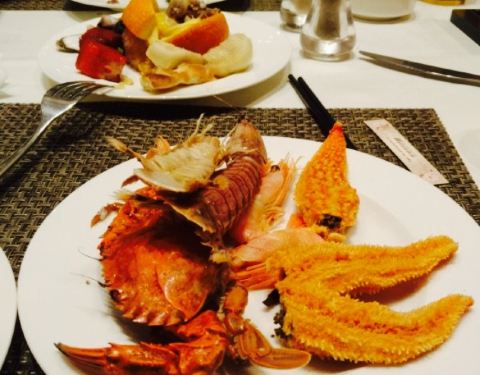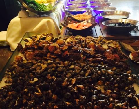 送儿子回招远过暑假,想吃海鲜自助,搜到了这家,抱着试试看的态度携一家老小共餐,先来说说环境,新装修的大酒店,很高级,就餐环境安逸,人不多。菜品还是不错的,可选择的很多,每人还有一份牛排。这个价格的消费可以吃到这些已经特别好了,所以总体觉得不错。